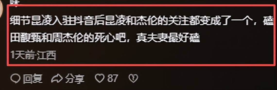 网友评论很扎心:“过往再遗憾也是过去,珍惜眼前人才是最重要的,杰伦和昆凌的幸福骗不了人。”